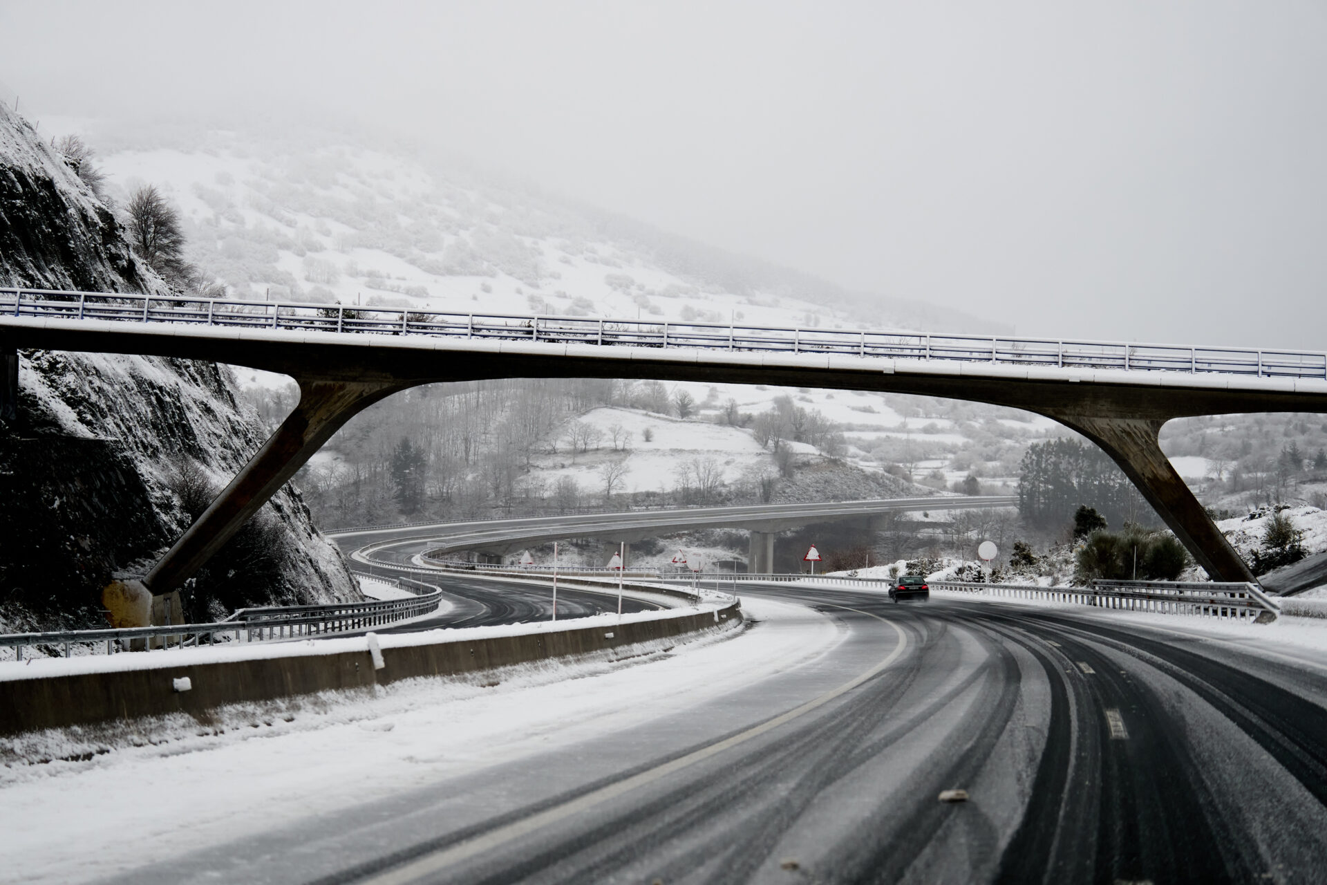 Una jornada en la que continúan cerrados al tráfico por la nieve los puertos de Palombera (desde el punto kilométrico 23 y hasta el 30) y Lunada (puntos kilométricos del 6 al 14).
