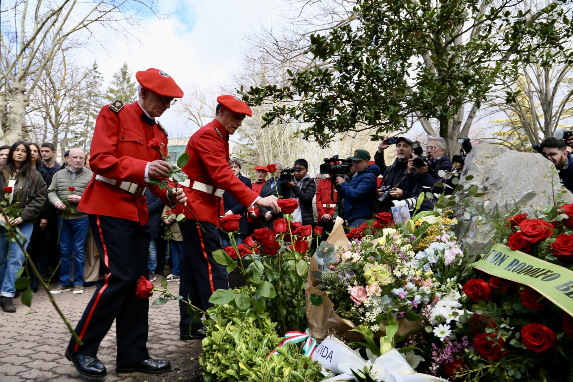La directora y el jefe de la Ertzaintza, Victoria Landa y Josu Bujanda, además de otros mandos y agentes y compañeros de Jorge Díez Elorza, han acompañado a su familia y personas allegadas que han asistido al homenaje, que ha consistido en un minuto de silencio y una ofrenda floral en los Jardines de la Libertad, junto al monolito en su memoria.