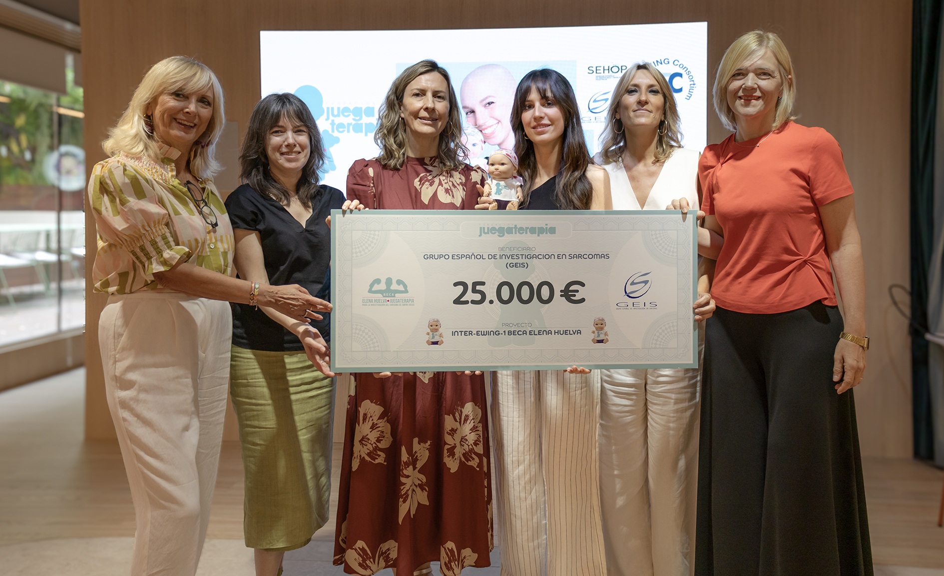La presidenta del GEIS, Claudia Valverde, ha celebrado la entrega de esta donación, lograda gracias a la venta del Baby Pelón , diseñado antes de fallecer por la paciente de sarcoma de Ewing y activista Elena Huelva, logrando una recaudación de 332.000 euros.