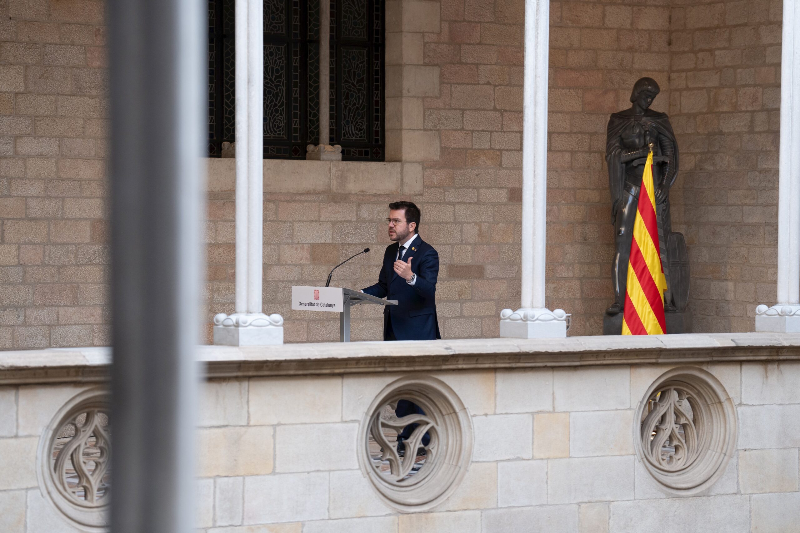La Generalitat retira la bandera de España tras la intervención de Sánchez y antes de la rueda de prensa de Aragonès