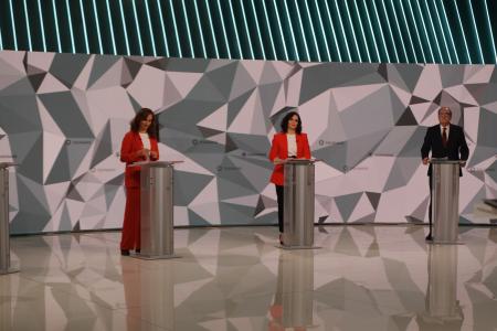 Los seis candidatos han permanecido con la mascarilla puesta hasta el arranque del debate, situados en atriles separados con dos metros de distancia.