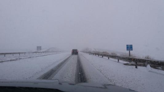 La nieve impide la circulación de camiones y autobuses en la A-67