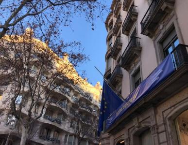 Al igual que el resto de sedes del Parlamento Europeo, la bandera de la UE de la Oficina de la Eurocámara en Barcelona ondea a media asta en señal de duelo por la muerte de Sassoli.