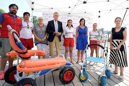 Pedro Diez ha asegurado que esta colaboración entre Cruz Roja y AXA introduce mejoras en los servicios de baño adaptado que complementa lo que ya se viene realizando con el Ayuntamiento y servirá para que todas las personas, «sin excepción», puedan acceder al baño en el mar «con seguridad y sin barreras».