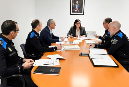 La alcaldesa, Gema Igual, acompañada por el concejal de Protección Ciudadana, Pedro Nalda, ha visitado las nuevas dependencias de la Policía Local en Peñacastillo y se ha reunido con los mandos del Cuerpo, quienes le han informado sobre el balance del pasado ejercicio.