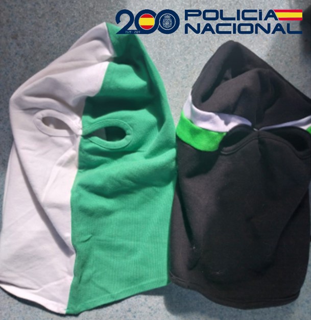 Durante el dispositivo policial se intervino, además del hacha y los pasamontañas, un spray de defensa personal, un artefacto pirotécnico, decenas de pegatinas con mensajes incitadores a la violencia y varias sustancias estupefacientes.