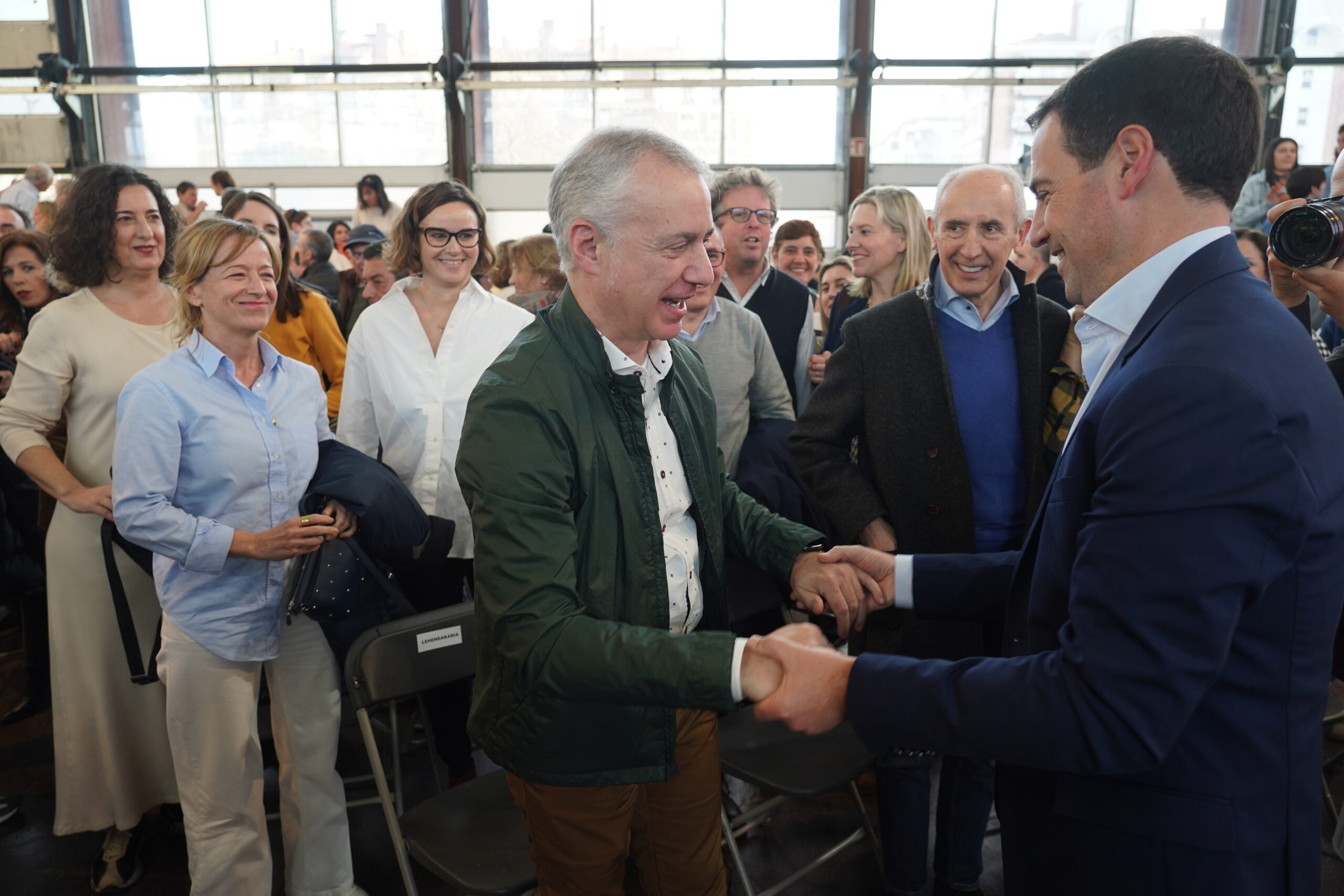 Más de 2.500 militantes y simpatizantes del PNV han abarrotado Landako Gunea de Durango, en Vizcaya, que se ha quedado pequeña para acoger la puesta de largo de Imanol Pradales como candidato a lehendakari, y que se ha convertido, a su vez, en un acto de reconocimiento a Iñigo Urkullu, presidente del Gobierno Vasco durante tres legislaturas, que ha sido aclamado entre aplausos de todos, dirigentes y representantes jeltzales incluidos.
