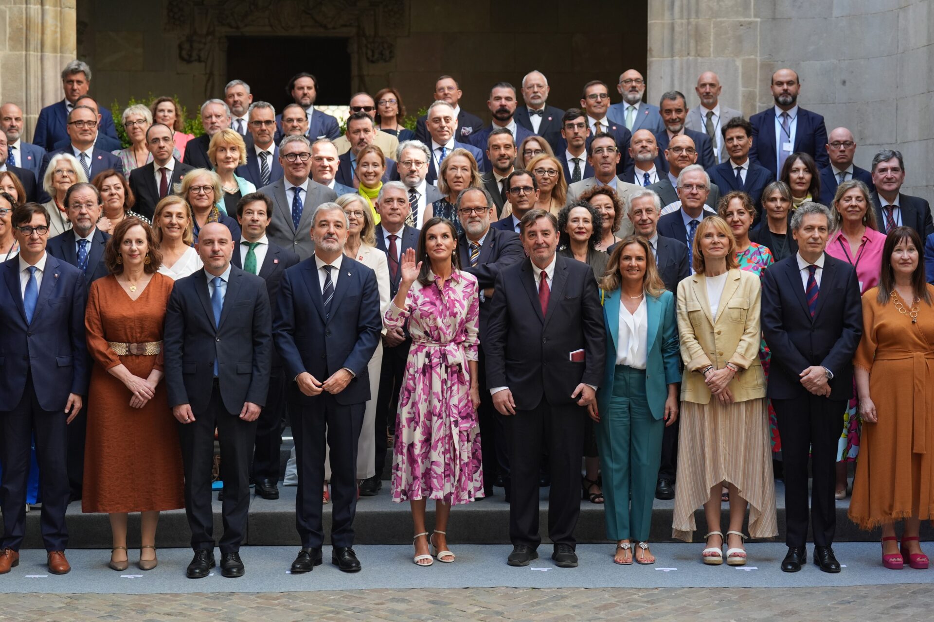 Después, la reina se ha fotografiado en la escalinata junto a las autoridades y los directores del Cervantes, que hasta el jueves celebran su Reunión anual, en un encuentro que se celebra por primera vez en Catalunya.