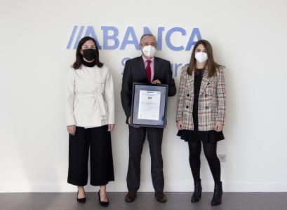 En el acto de entrega del certificado, que tuvo lugar en el edificio de Abanca Seguros en A Coruña, participaron el director de la Región Atlántica de Aenor, Martín Pita; el director de la sede de Aenor en Galicia, José Enrique Rodríguez Coello; la gerente de Control de Gestión y Estrategia Seguros de Abanca Seguros, Noelia Tilve; la gerente de Gestión y Mantenimiento de Inmuebles de Abanca, María Infante; y la coordinadora de Sostenibilidad de Abanca, María García.