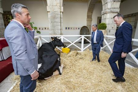 Tras repasar el camino de Agapito Fernández en el sector y todos los premios obtenidos por Llinde Ariel Jordan, ha destacado «saber estar» de la vaca en el espacio que se le ha reservado en el patio del Parlamento, y ha insistido en el compromiso del Gobierno con la ganadería, porque, en sus palabras, «no hay dinero público mejor empleado que aquel que lo hace en defensa de las explotaciones familiares, de los programas, del apoyo a la sanidad y al bienestar animal, a la calidad o a la mejora genética, además de contribuir a frenar la despoblación rural».