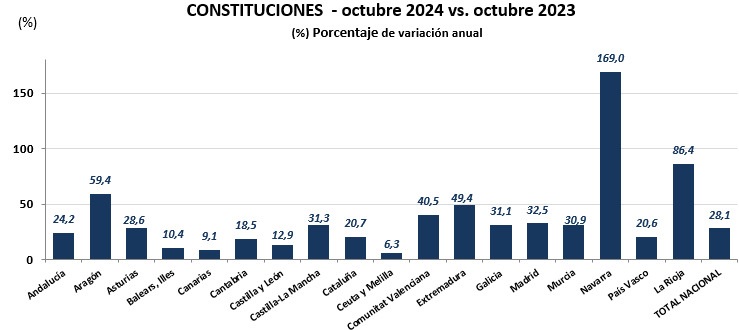 Las constituciones de nuevas sociedades mercantiles aumentaron un 28,1% en octubre, según los registradores