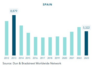 Las declaraciones de quiebra de empresas se redujeron un 15% en 2023, hasta las 5.322, según Informa D&B