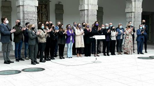 En un acto celebrado en el patio del Parlamento, María Ángeles Matanzas (por el grupo Regionalista), María José Sáenz de Buruaga (Popular), Noelia Cobo (Socialista) y Marta García (Ciudadanos) han compartido la lectura de un texto -consensuado por los cuatro grupos- que anima a tomar conciencia de que «el cuidado es cosa de todas y todos», y subraya la necesidad de «fortalecer las políticas públicas de conciliación y apoyo a los cuidados».