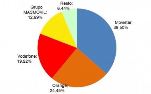 El 80,9% del total de las líneas se concentra en los tres principales operadores, Movistar, Orange (incluido Jazztel) y Vodafone (incluido Ono), si bien casi el 40% del total de las líneas corresponde a Movistar, que cuenta con un parque de 4,7 millones.