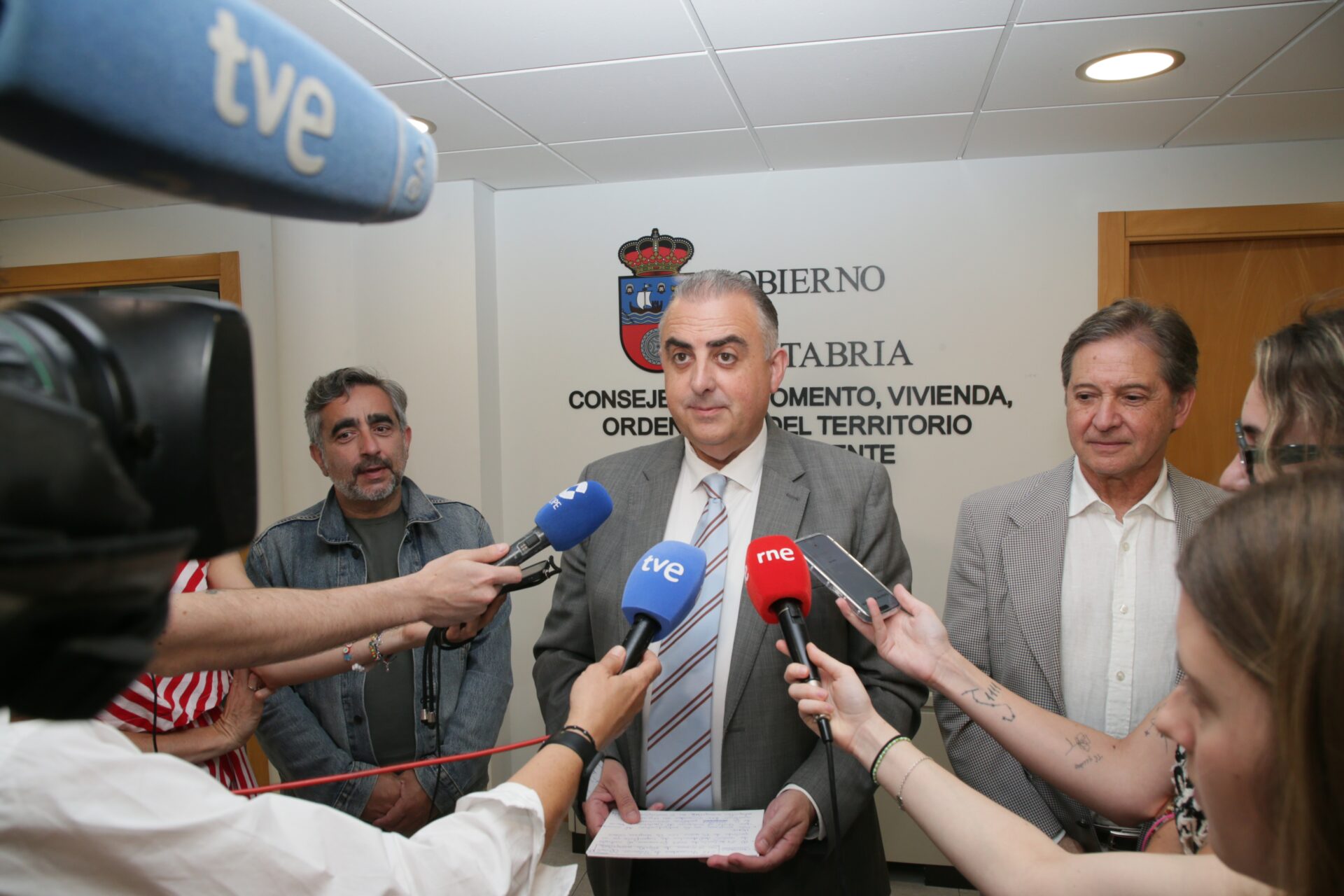Durante su intervención, acompañado por el director general de Vivienda, Carlos Montes; y el director de Gesvican, Carlos Gala, el consejero se ha referido a otros proyectos en los que su departamento está trabajando para hacer frente al problema de la vivienda en la región.