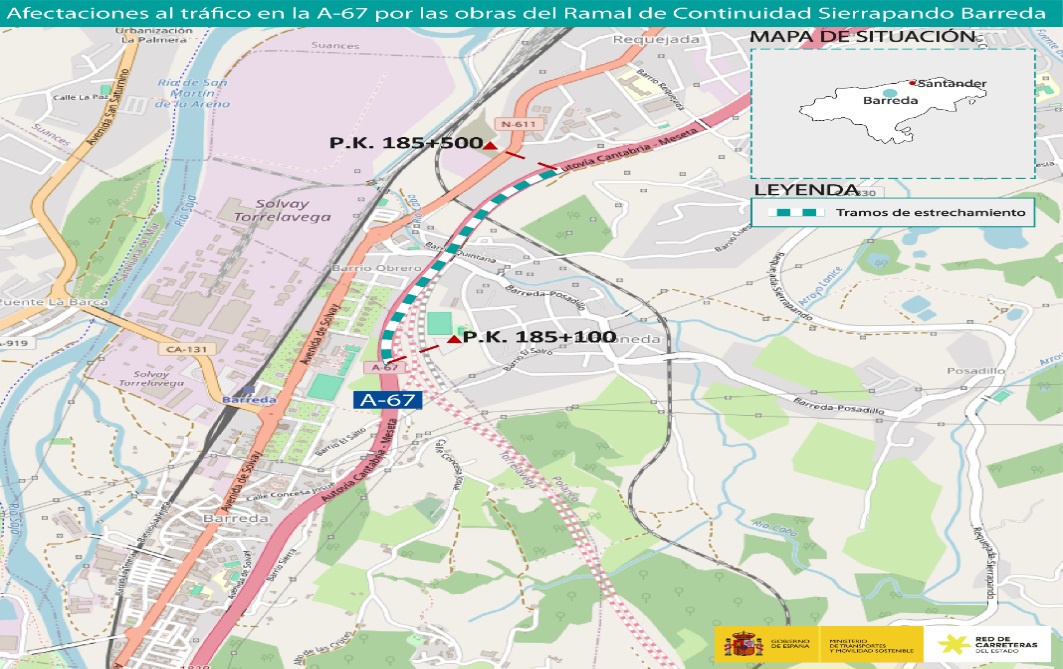 Se producirá un estrechamiento de las calzadas de la A-67 en la estructura de río Cabo, aproximadamente durante nueve semanas