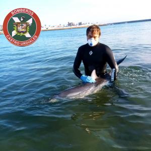 Los bomberos rescatan a un delfín varado en Castro Urdiales