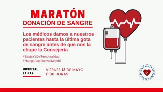 Los médicos no fijos de los hospitales públicos de la Comunidad de Madrid afrontarán este viernes su cuarto día de huelga con un llamamiento a donar sangre en el Hospital de La Paz para ilustrar su compromiso con los pacientes.