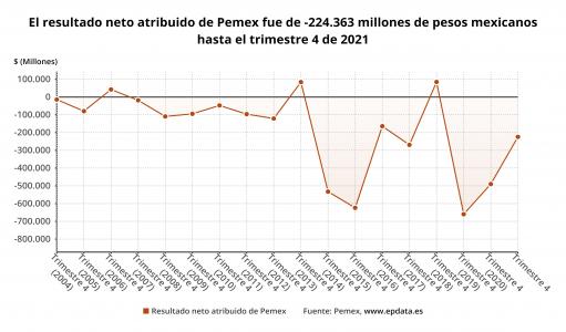 Pemex reduce sus pérdidas un 55,9% en 2021