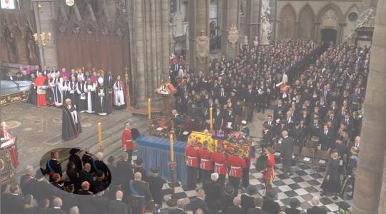 Los Reyes han sido sentados junto a los eméritos en el funeral de la reina Isabel II en la Abadía de Westminster en segunda fila y en una zona junto a otros miembros de otras casas reales, brindando de este modo la primera imagen juntos en más de dos años.
