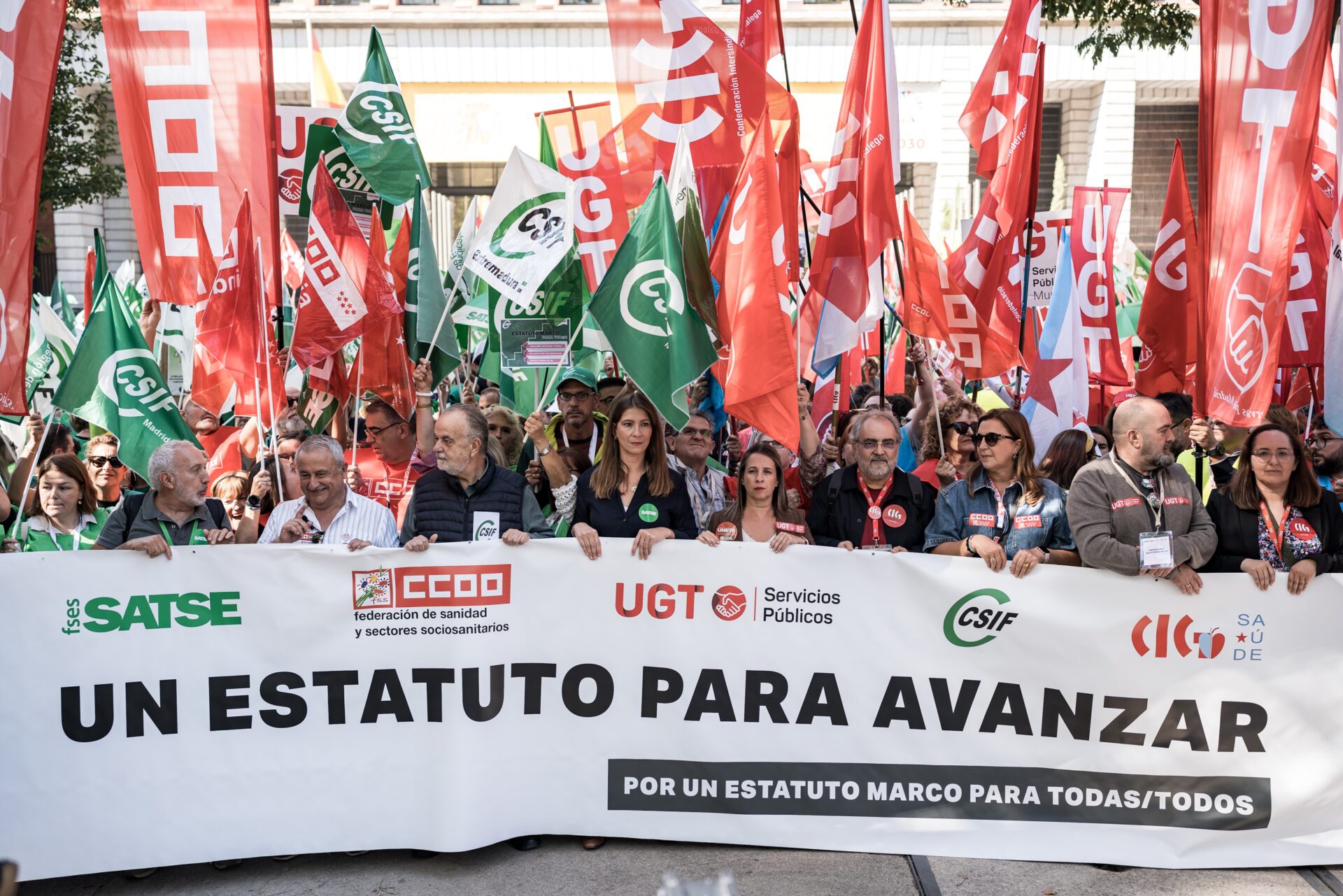Los sindicatos con representación en el Ámbito de Negociación (SATSE-FSES, FSS-CCOO, UGT, CSIF y CIG-Saúde) del Estatuto Marco han anunciado este martes que volverán a trasladar al Ministerio de Sanidad sus propuestas de articulado sobre jubilación y jornada laboral, en el marco de las negociaciones por un nuevo texto.