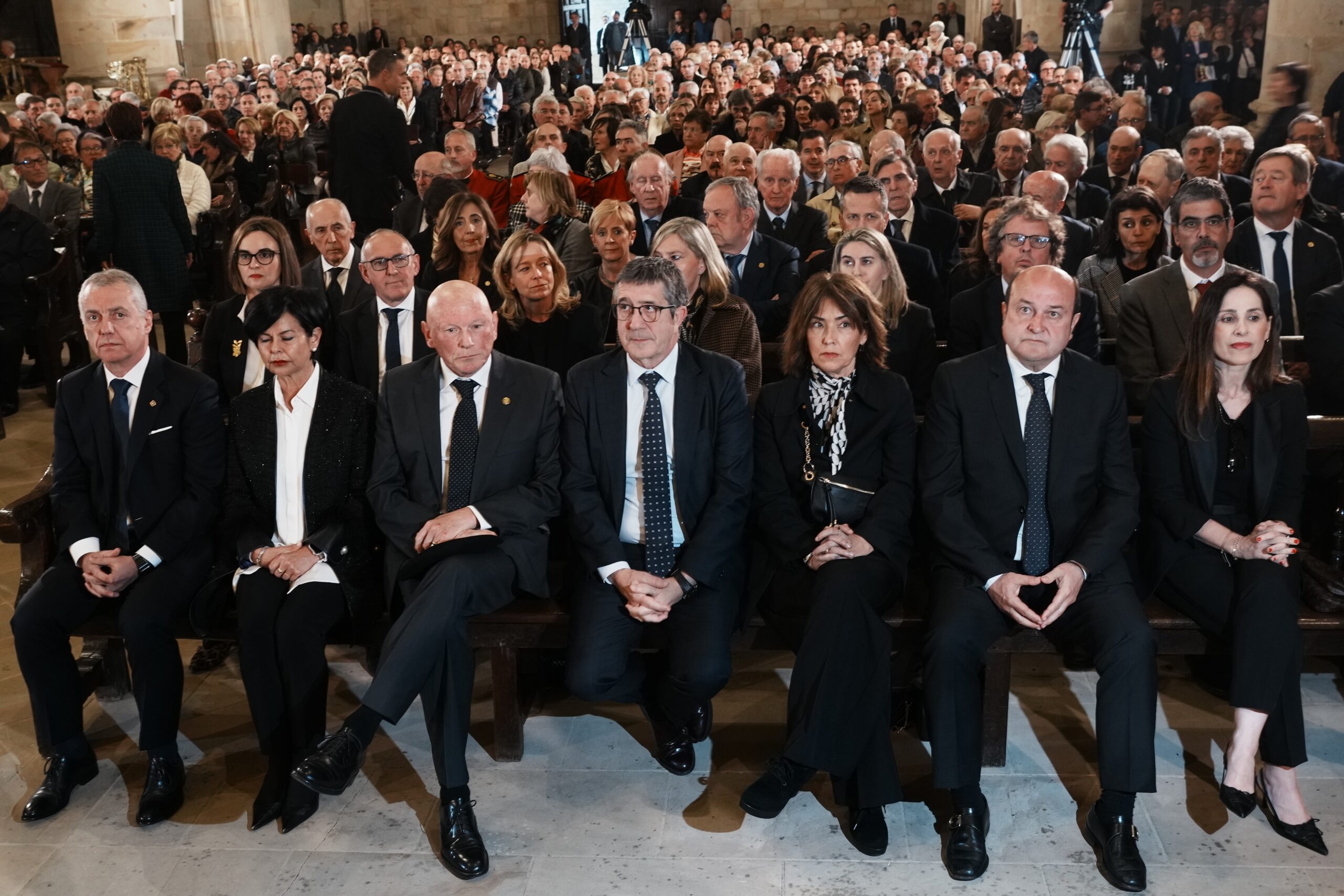 En la otra bancada, también en primera fila, se sentaban el lehendakari Iñigo Urkullu y su mujer Lucía Arieta-Araunabeña, su antecesor Patxi López y su mujer Begoña Gil, y el también exlehendakari Juan José Ibarretxe. Junto a ellos, el presidente del EBB, Andoni Ortuzar, y la presidenta del Parlamento Vasco, Bakartxo Tejeria.