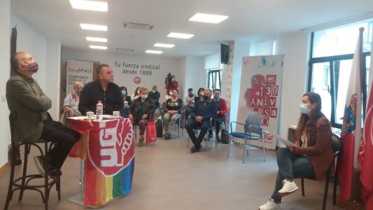 El secretario general del sindicato y su homólogo de Cantabria responden durante casi dos horas a las preguntas de trabajadores de la región