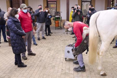 Posteriormente ha asistido a una presentación a cargo del subdirector general de Administración Periférica, Jesús Ángel García, y del jefe de las instalaciones de Cría Caballar de Mazcuerras, Eugenio Heredia. Ambos le han explicado las distintas funciones del centro, uno de los seis que existen en España con los fines de proteger la cabaña equina nacional y permitir la selección y mejora del ganado caballar autóctono.