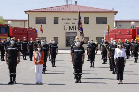 Margarita Robles visita la base de la UME en Zaragoza y resalta el trabajo de las Fuerzas Armadas «en tiempos difíciles»