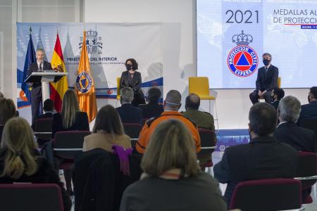 Entre los galardonados por la Dirección General de Protección Civil y Emergencias destaca la medalla de oro, con distintivo rojo, concedida a Cruz Roja Española, recogida este jueves por su presidente, Javier Senent. Desde el inicio de la pandemia, esta organización ha colaborado con la dirección general en la protección y cuidado de los sectores sociales más débiles, así como con las campañas de divulgación #YoHagoPorTi y #NoTeDesfases.