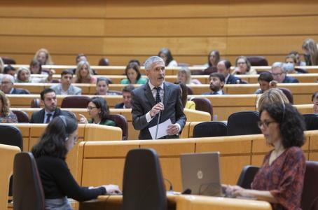 «Incumplir los valores constitucionales es lo que menos gusta a este Gobierno», ha señalado Grande-Marlaska en la sesión de control en el Senado, donde ha sostenido que España es una «democracia plena» y ha pedido a los partidos independentistas que tengan «un poco de respeto» a la dignidad del conjunto de empleados públicos.