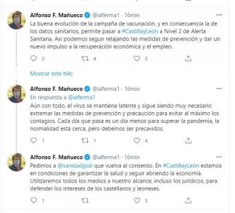 Asimismo, le ha pedido al Gobierno y al Ministerio que dirige Carolina Darias que vuelva al consenso. «En Castilla y León en condiciones de garantizar la salud y seguir abriendo la economía. Utilizaremos todos los medios a nuestro alcance, incluso los jurídicos para defender los intereses de los castellanos y leoneses», ha escrito el presidente de la Junta.