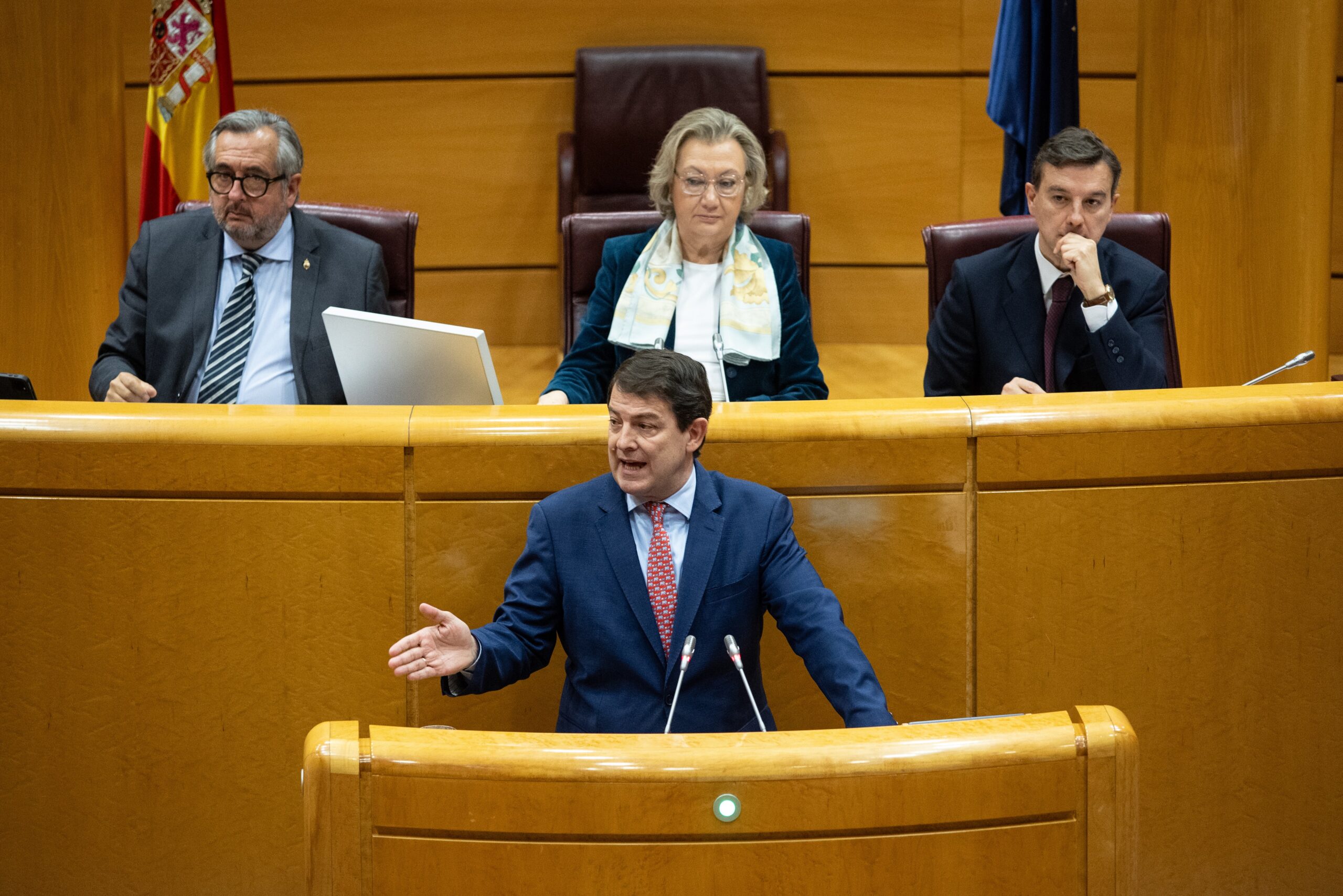 Mañueco ha intervenido en la Cámara Alta junto a otros siete presidentes autonómicos del PP para apoyar informe que se debatía en contra de la Ley de Amnistía, una sesión en la que el presidente de Castilla y León ha afeado la ausencia de los representantes del Gobierno de España.