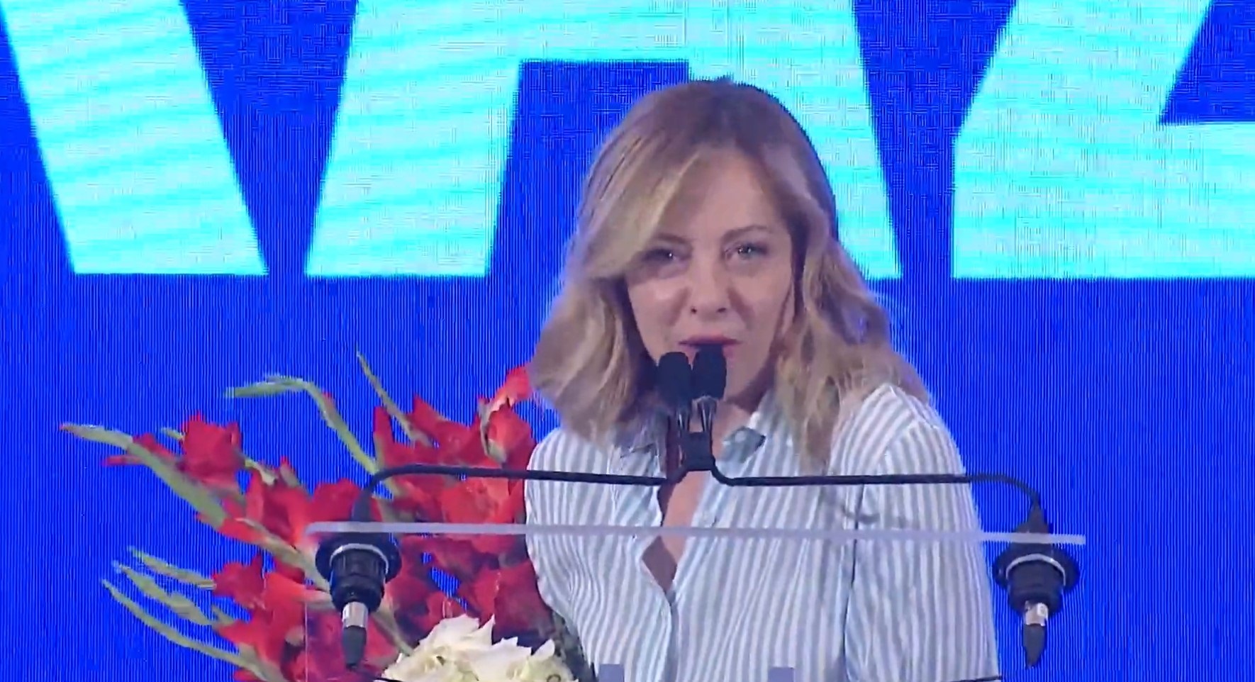 «Gracias a esa mayoría de italianos que han seguido eligiendo a Hermanos de Italia y al centro derecha, estoy extraordinariamente orgullosa del resultado de Hermanos de Italia, pero también de la Liga y de Forza Italia», ha declarado desde la sede del comité de su partido en Roma, en referencia a sus socios de gobierno.