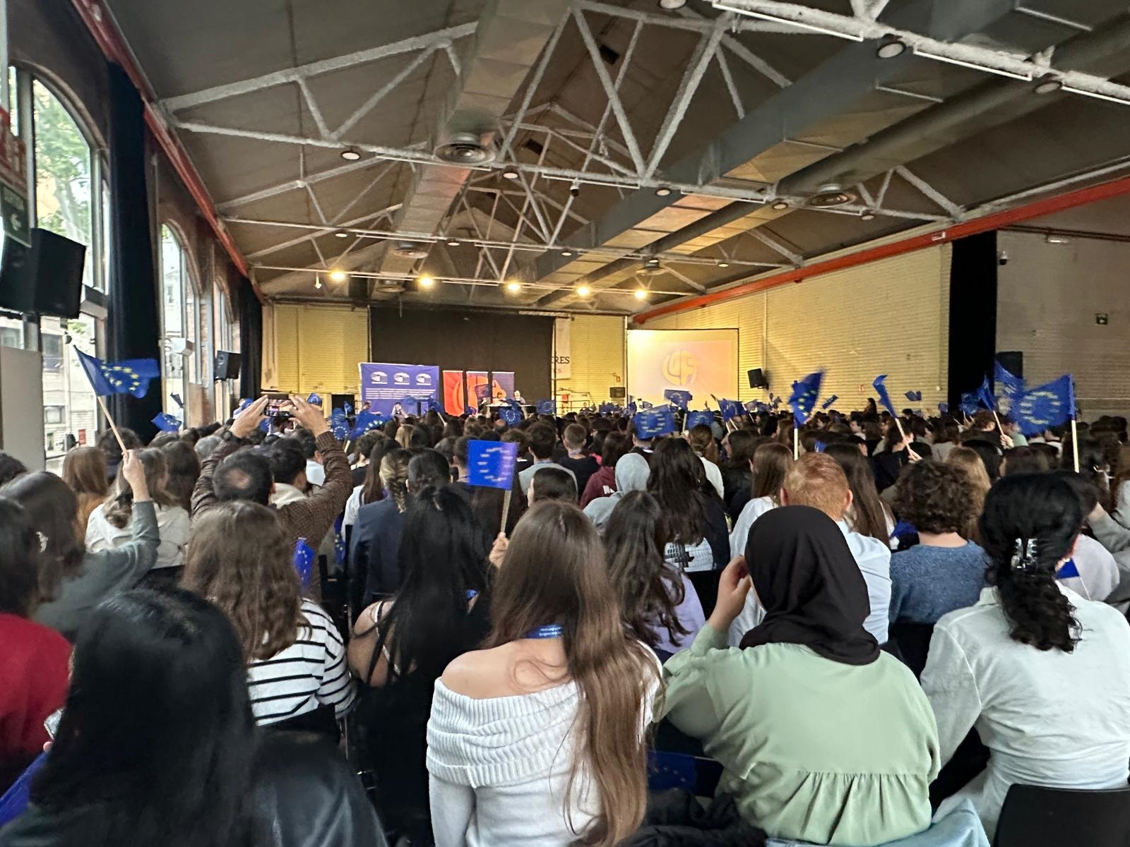En la jornada han participado más de 600 alumnos y unos 60 profesores de 21 centros educativos de 15 municipios de Cataluña que forman parte del programa Escuelas Embajadoras del Parlamento Europeo.