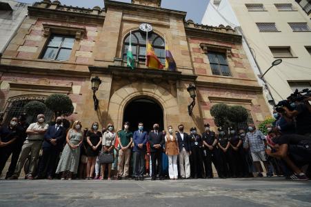 La puerta del Ayuntamiento de Algeciras (Cádiz), con las banderas a media asta en señal de duelo, ha acogido un minuto de silencio en memoria del trabajador del Servicio de Aduanas fallecido este fin de semana en el Campo de Gibraltar.