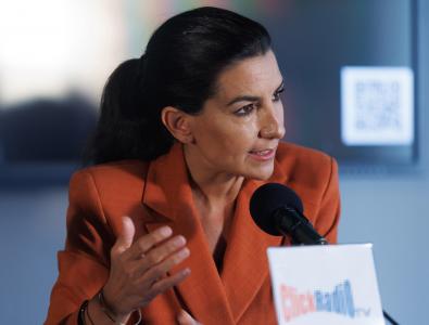 Así ha defendido Monasterio a su contrincante de campaña durante un acto en Ciudad Lineal, después de que la formación morada desplegara en pleno barrio de Salamanca una lona con la cara del hermano de la presidenta.