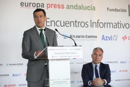 Son ideas que Juanma Moreno ha venido a trasladar durante su intervención en la presentación del coordinador general del PP, Elías Bendodo, en un encuentro informativo organizado por Europa Press Andalucía en colaboración con Fundación Cajasol y con el patrocinio de Cepsa, Atlantic Copper, Azvi y Grupo Abades en Sevilla.