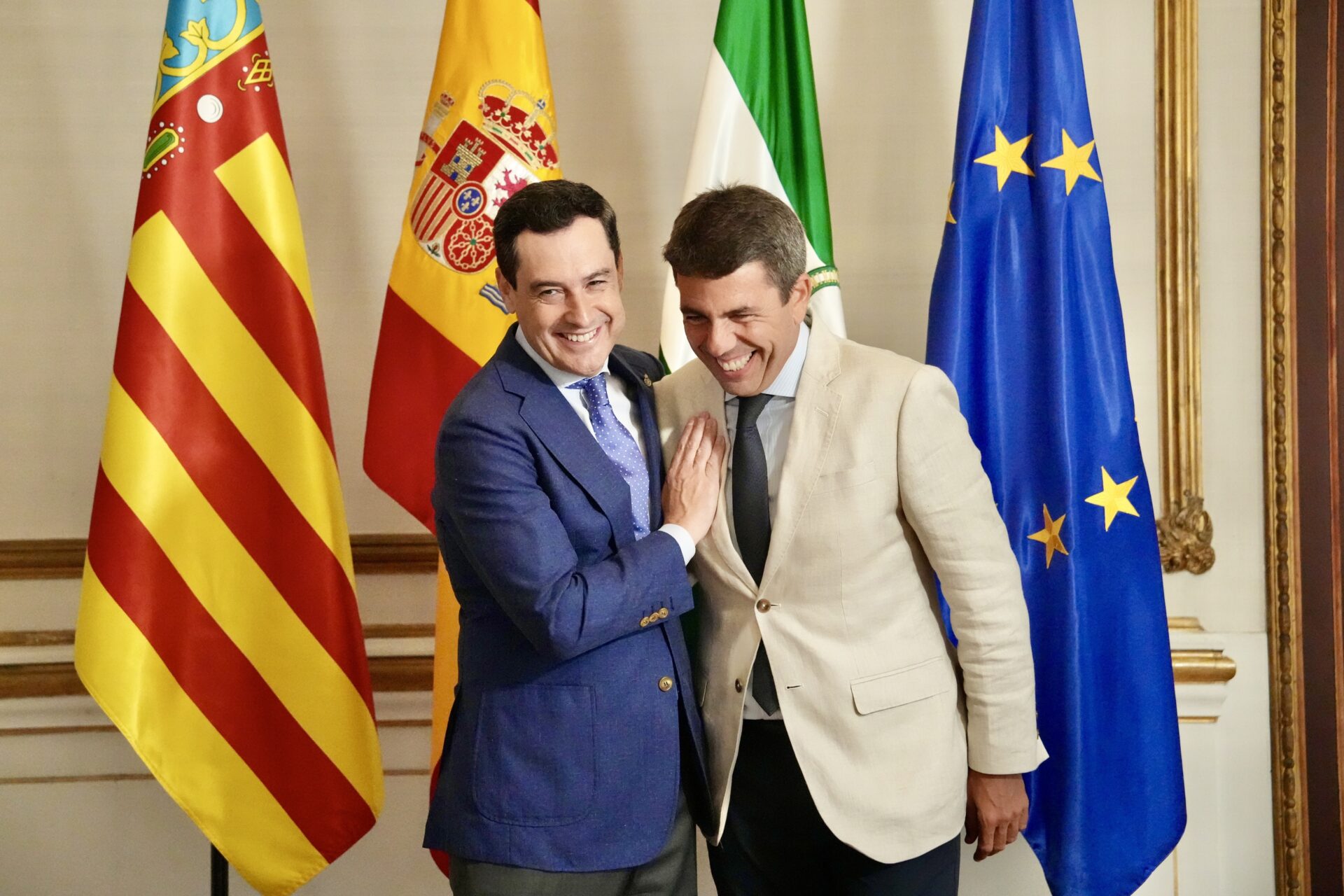 El presidente valenciano, Carlos Mazón, anticipó la semana pasada, durante el Debate de Política General de su comunidad, que esta semana se reuniría con el presidente de la Junta de Andalucía, Juanma Moreno, para mantener un encuentro en el que preveían avanzar en «cuestiones estratégicas» que comparten ambas autonomías.
