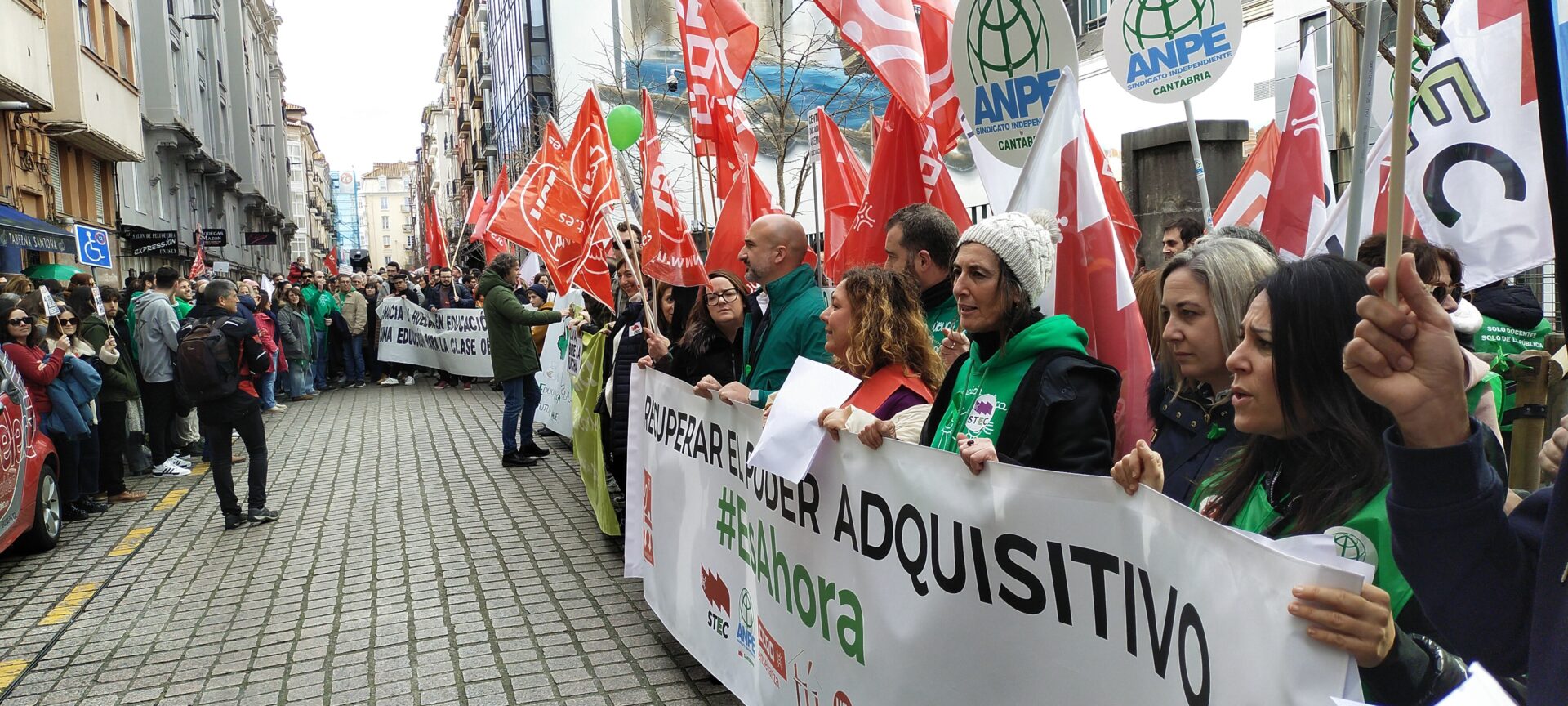 Más de 2.000 docentes de Cantabria –según la organización– se han manifestado este sábado en Santander por un salario «decente» dentro de las movilizaciones convocadas por la Junta de Personal Docente (JPD) para reivindicar la mejora de la retribución de los profesores de la región después de 17 años «soportando» una congelación salarial autonómica.
