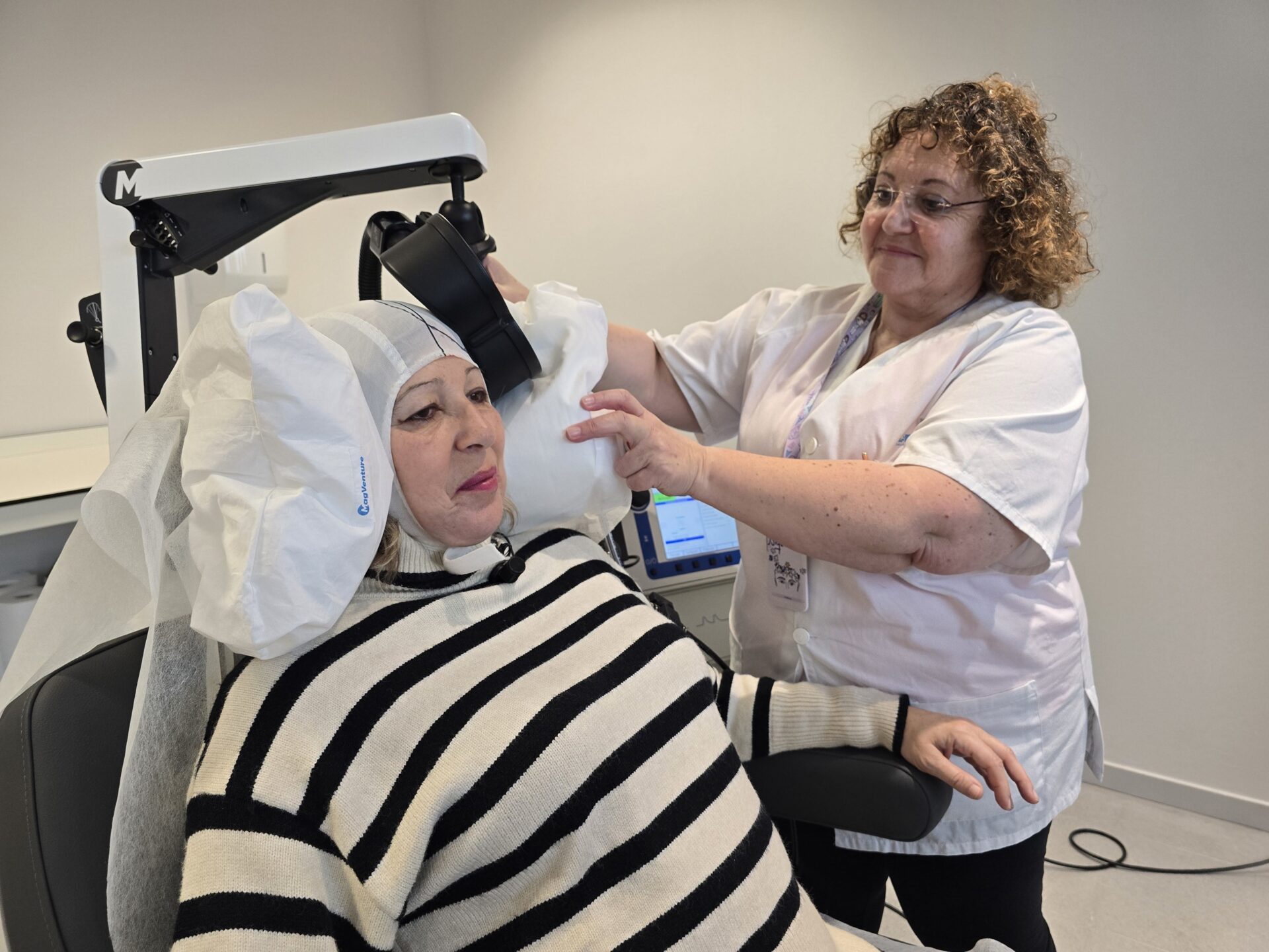 La estimulación magnética transcraneal consiste en la colocación de un gorro personalizado para cada paciente, en el que se identifican los puntos que se quieren estimular. El tratamiento consiste en 30 sesiones de tres minutos cada una.