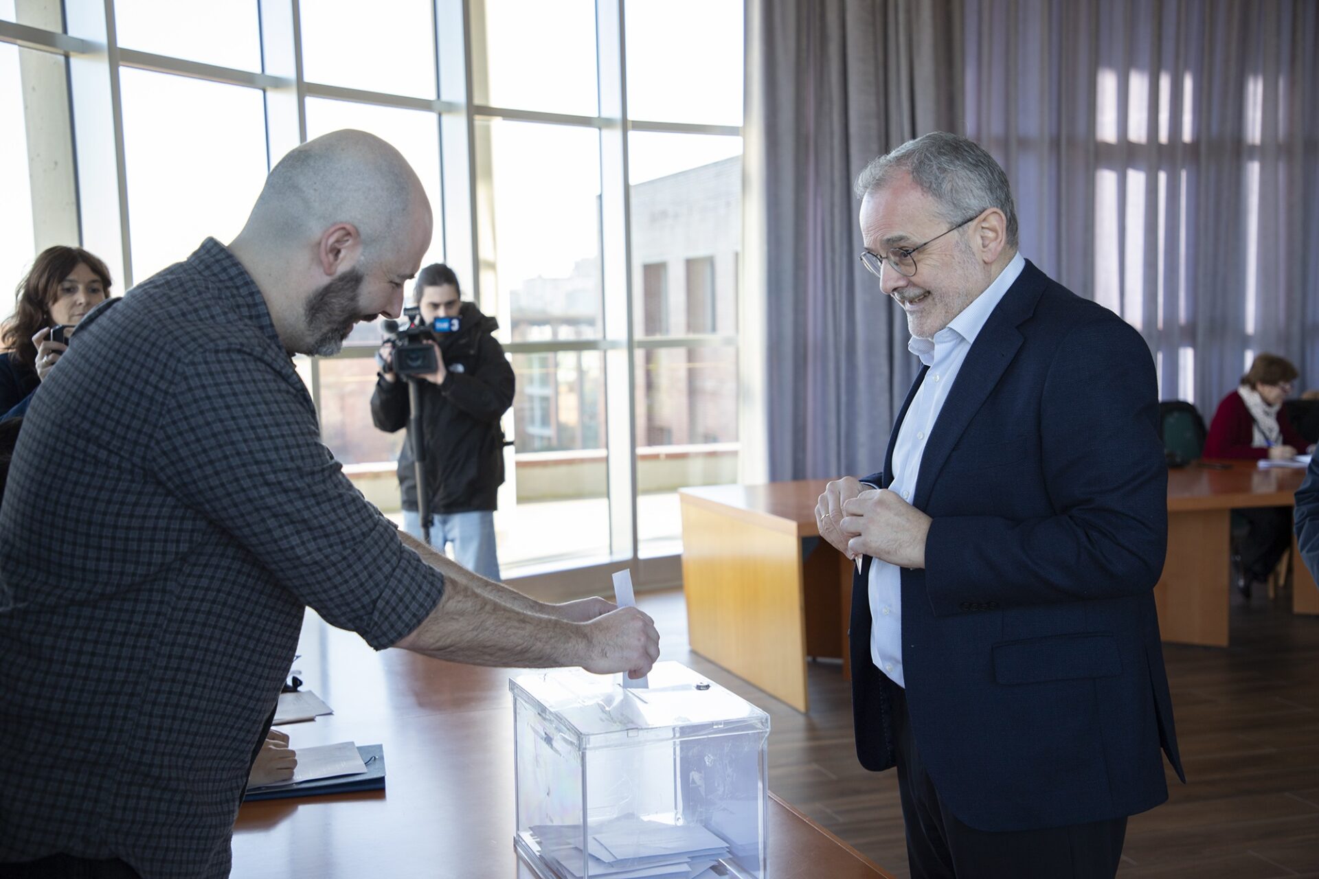 En la sala Guillermo Gómez Laa, en el edificio de la Facultad de Derecho y de Ciencias Económicas y Empresariales, votan tres de los cuatro sectores: el de profesores doctores permanentes (sector 1), el del resto de profesorado y personal investigador (sector 2) y el de PTGA (sector 4). El estudiantado (sector 3) vota en urnas distribuidas por los centros.