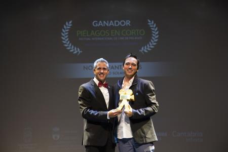 Entre los 16 galardonados se encuentra también Marc G Ross con su cinta El otros , que ha obtenido el premio de mejor corto nacional, que ha entregado la alcaldesa de Piélagos, Verónica Samperio.