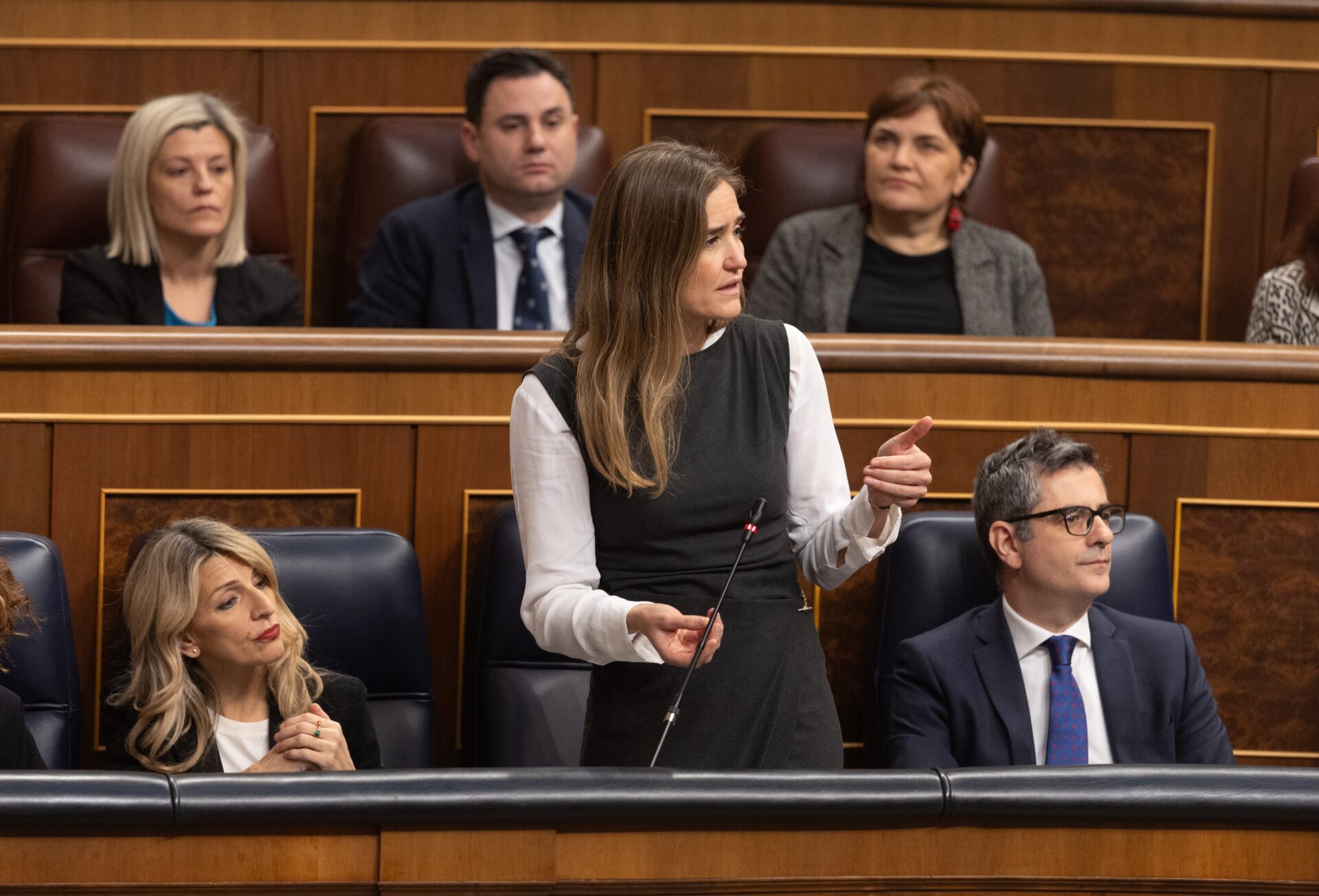 Desde Vox será la portavoz en el Congreso, Pepa Millán, quien intente dirigirse al ministro de Presidencia, Justicia y Relaciones con las Cortes, Félix Bolaños, para preguntarle si su Gobierno se responsabiliza de algo.