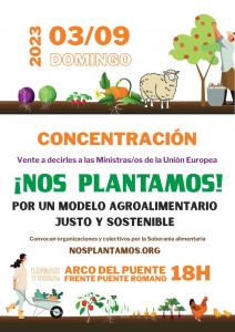 Y el domingo día 3, el movimiento alimentario ha convocado una concentración en la Plaza del Arco del Puente, frente al Puente Romano, desde las 18,00 a las 20,00 horas, aprovechando que los ministros de Agricultura de la Unión Europea visitarán la Mezquita-Catedral de Córdoba en el marco de la reunión informal de ministros que se desarrolla hasta el martes 5 en la ciudad a propósito de la Presidencia Española de la Unión Europea.