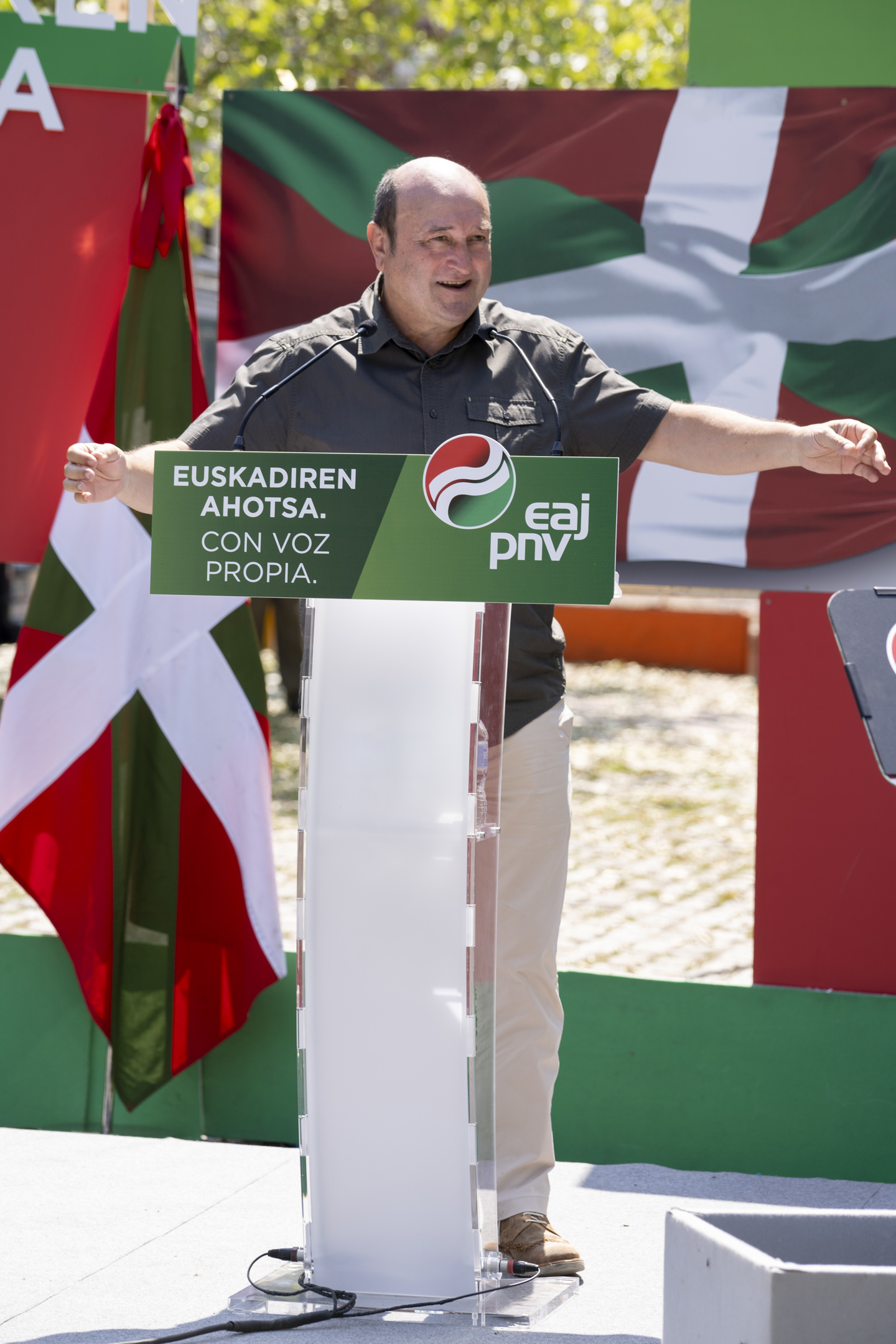 «Si Bildu quiere dar cheques en blanco a Sánchez, si quiere seguir siendo sumiso en Madrid, si está dispuesto a todo para que le dejen pisar moqueta allí, que lo sea. Pero nosotros y nosotras, no. Nosotros y nosotras, con Euskadi y solo con Euskadi», ha insistido antes de defender que «el voto del PNV, el voto de Euskadi, hay que ganárselo».