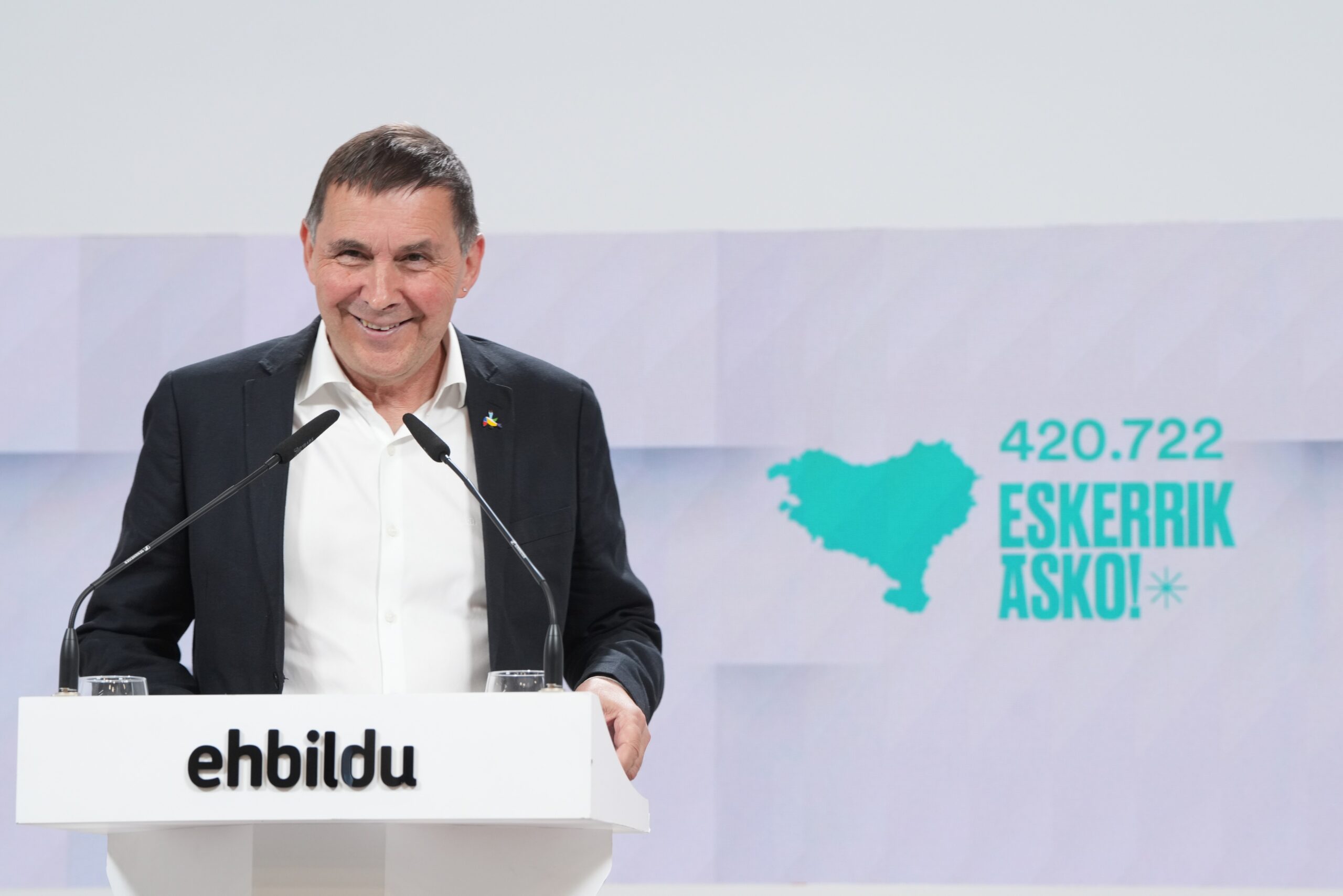 El coordinador general de EH Bildu, Arnaldo Otegi, ha acusado a PNV y PSE-EE de estar solo de acuerdo «en repartirse los cargos», así como de «camuflar» sus intenciones en campaña electoral. «Cuando han dado las cuentas, no han disimulado ni 24 horas», ha señalado, en alusión a un posible acuerdo de gobierno.