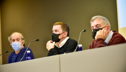 Junto a ellos, ha estado su anfitrión en esos encuentros, el propietario de la casa en la que se sucedieron las reuniones, Pello Rubio, en un acto organizado por Baketik , fundación dedicada a «promover procesos de transformación personal, educacional, convivencial, organizacional o social con sentido ético».