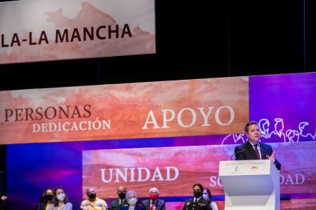 El presidente autonómico ha insistido en la pertenencia de Castilla-La Mancha a España. «Si somos autonomía es porque somos españoles. Sólo en este espacio constitucional se han visto reconocidos nuestros derechos y libertades», ha recordado.