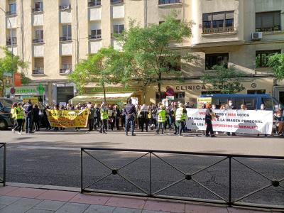 Medio centenar de trabajadores del sector de la imagen personal, peluquerías, barberías y estética se han concentrado este lunes frente a la sede del PSOE de la calle Ferraz, en Madrid, para exigir la bajada del IVA al 10% en este tipo de negocios y servicios.